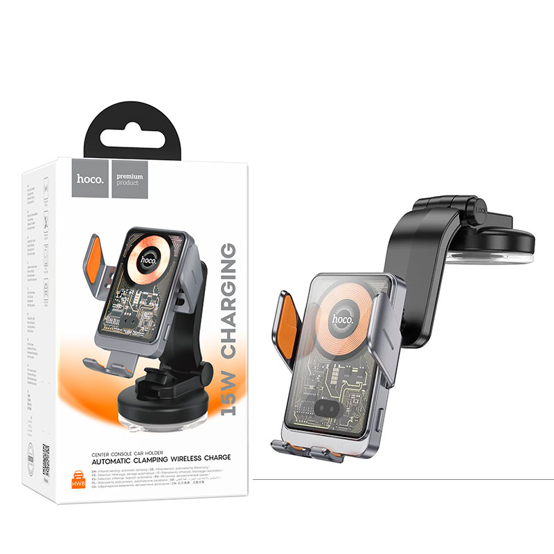 Автомобильный держатель для телефона Hoco HW8 15W Wireless Charging (черный)
