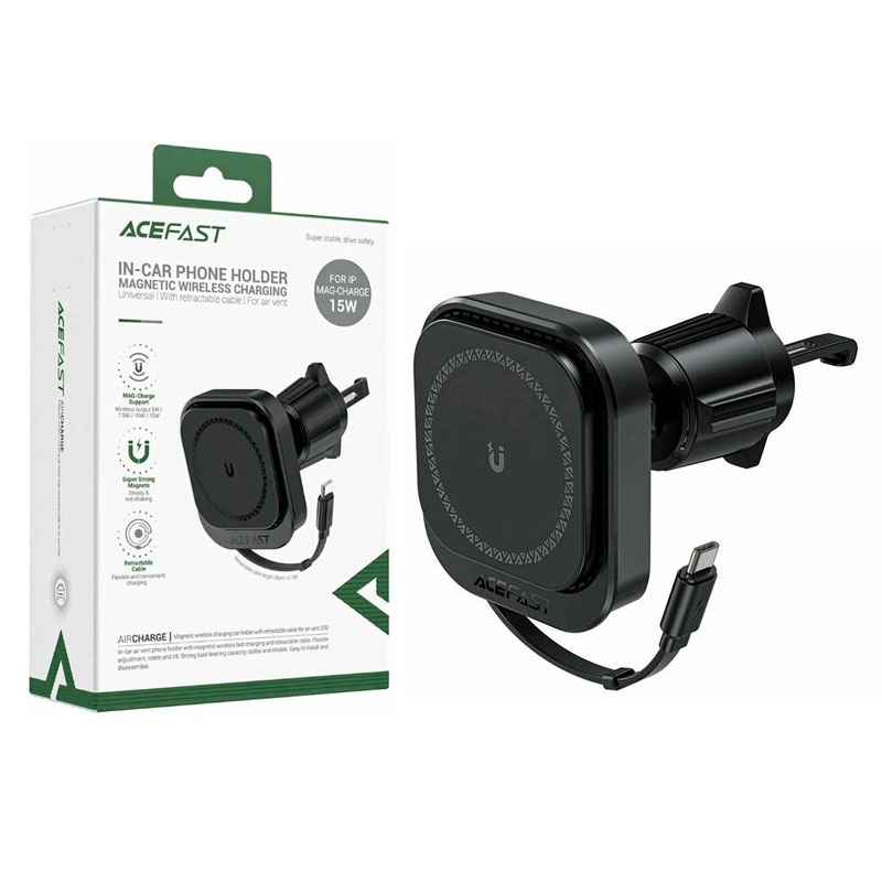 Автомобильный держатель для телефона AceFast D32 15W Wireless Charging (черный)