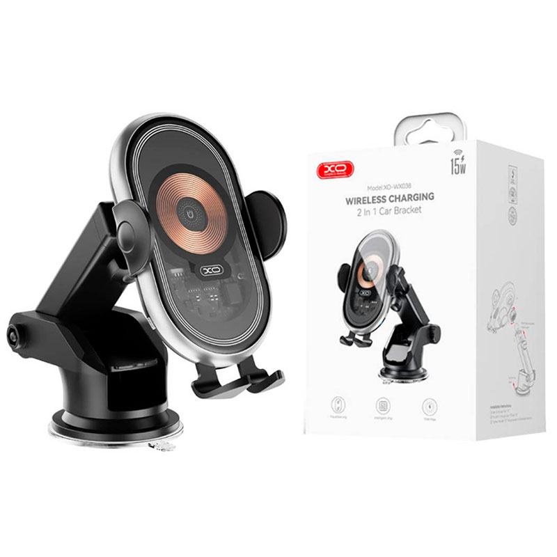Автомобильный держатель для телефона XO WX038 15W Wireless Charging (черный)