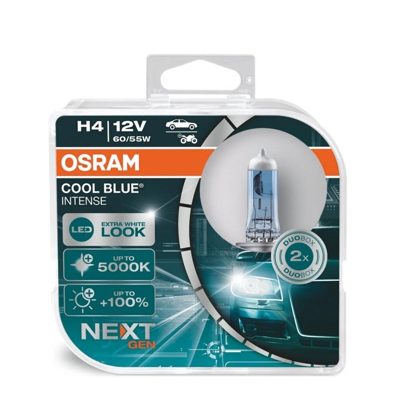 Комплект галогенных ламп H4 Osram Cool Blue Intense +100% 12V 60/55W 5000K (64193CBN-HCB)