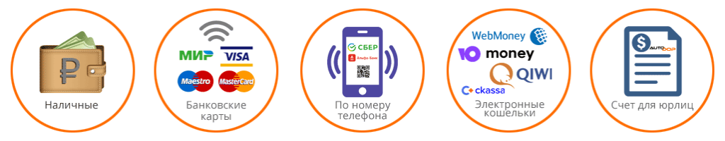 Для вашего удобства, предусмотрены следующие способы оплаты: