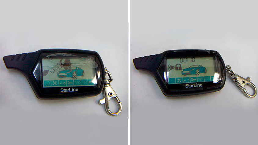 Если кнопка перестала срабатывать или работает некорректно, наши специалисты смогут качественно заменить кнопку брелка. - Ремонт дисплея брелока автосигнализации